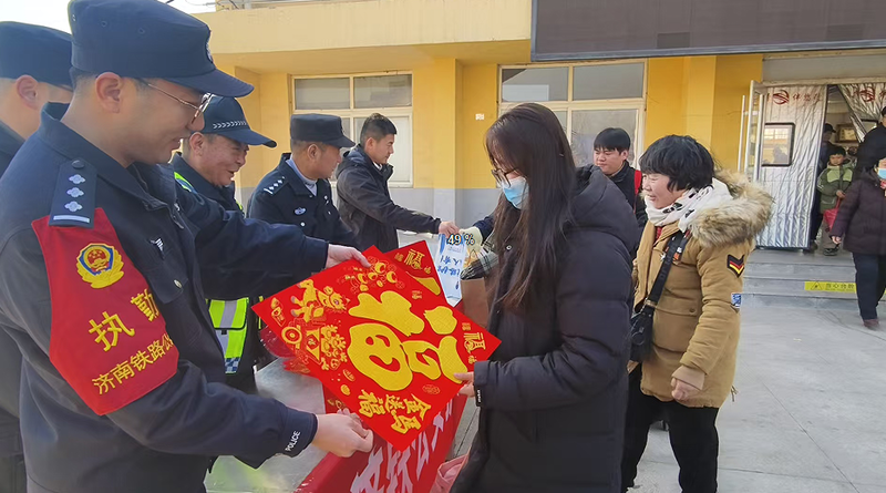 春节将至,根据济南铁路公安局济南公安处春运工作安排,曲阜站派出所根据辖区泗水县国家贫困县、外出务工大县的实际,联合泗水县政法委护路办,泗水县派出所、交通局,泗水站等单位,在泗水站出站口开展护航春运、平