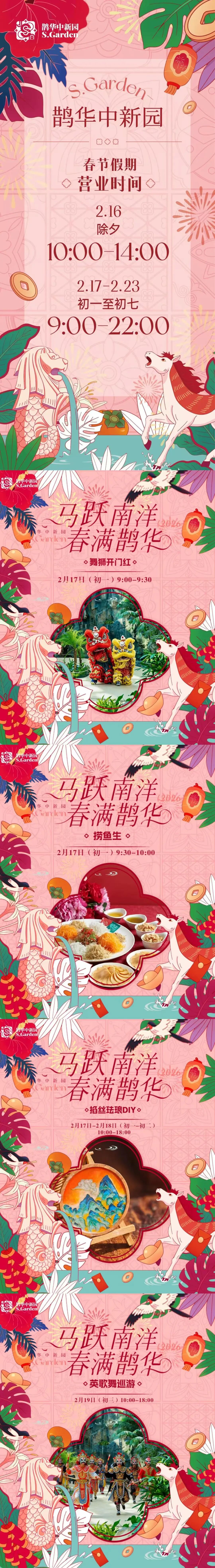 当中国红邂逅娘惹彩,当年俗韵律碰撞南洋风情,一场跨越山海的文化盛宴已在鹊华中新园热烈启幕。