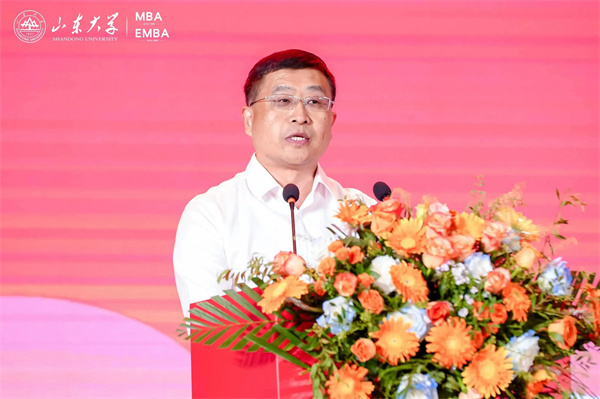 刘国亮祝贺全体新生加入山东大学这个温暖奋进的大家庭,山东大学建校122年来,始终坚守“为天下储人才,为国家图富强”的办学宗旨,恪守着“为国育贤”的初心,培养了总计各类优秀人才70余万,持续产出国际领先的重大科研成果,为服务国家富强、民族复兴、人民幸福作出了重要贡献。他表示,今天各位同学“百战归来再读书”,希望大家树立高远志向,传承“家国情怀、担当精神、崇实品格、创新素养”的山大基因,充分利用学校的各类资源平台,把握大局大势,把自身的发展放到“两个大局”中去思考、定位和谋划,努力成长为能够应对复杂多变环境的新时代卓越儒商,把个人的理想追求与中华民族的前途命运紧密联系在一起,以青春之我扛起时代之责。