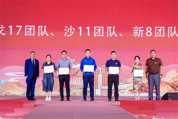 郑彬、刘冰为尖烽时刻、戈17、沙11、草8、新8团队颁奖,李良杰、姜翰为2023级最佳后援团队的、最佳人气班级,最佳凝聚力班级等颁奖。