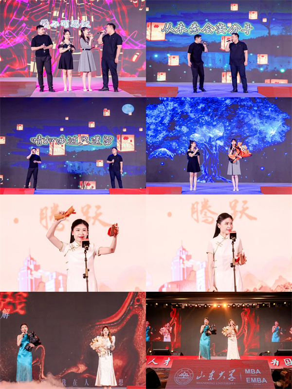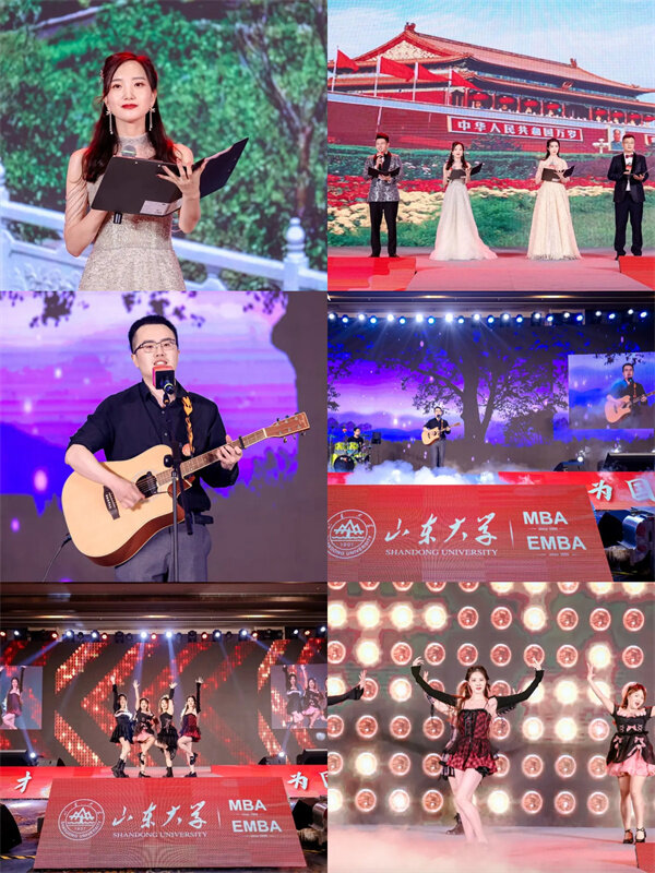 本次迎新晚会紧扣“荣耀&腾跃”这一主题,旨在展现山大MBA/EMBAers与时俱进、朝气蓬勃的精神风貌,共分为“师·传承”“学·腾跃”“梦·飞扬”三个篇章。第一篇章是“师·传承”迎新晚会以灯光秀《敦煌飞天》舞蹈开场《国风走秀》节目实现了一场跨越百余年的时空对话,“我仰望你看过的星空,穿过百年时空再相逢。”《大江东去》展现学子们的赤诚之心,以及山大人“为天下储人才,为国家图富强”的家国情怀。《古彩戏法》展现了人类多元文化的结晶以及不断探索创新的勇气。古筝伴舞《青花瓷》中武术表演是兄弟义气的江湖梦,舞蹈秀是宁静致远的文艺梦,古筝表演是沿袭国粹的传承梦,整个节目展现的是礼仪之邦的大国梦。
