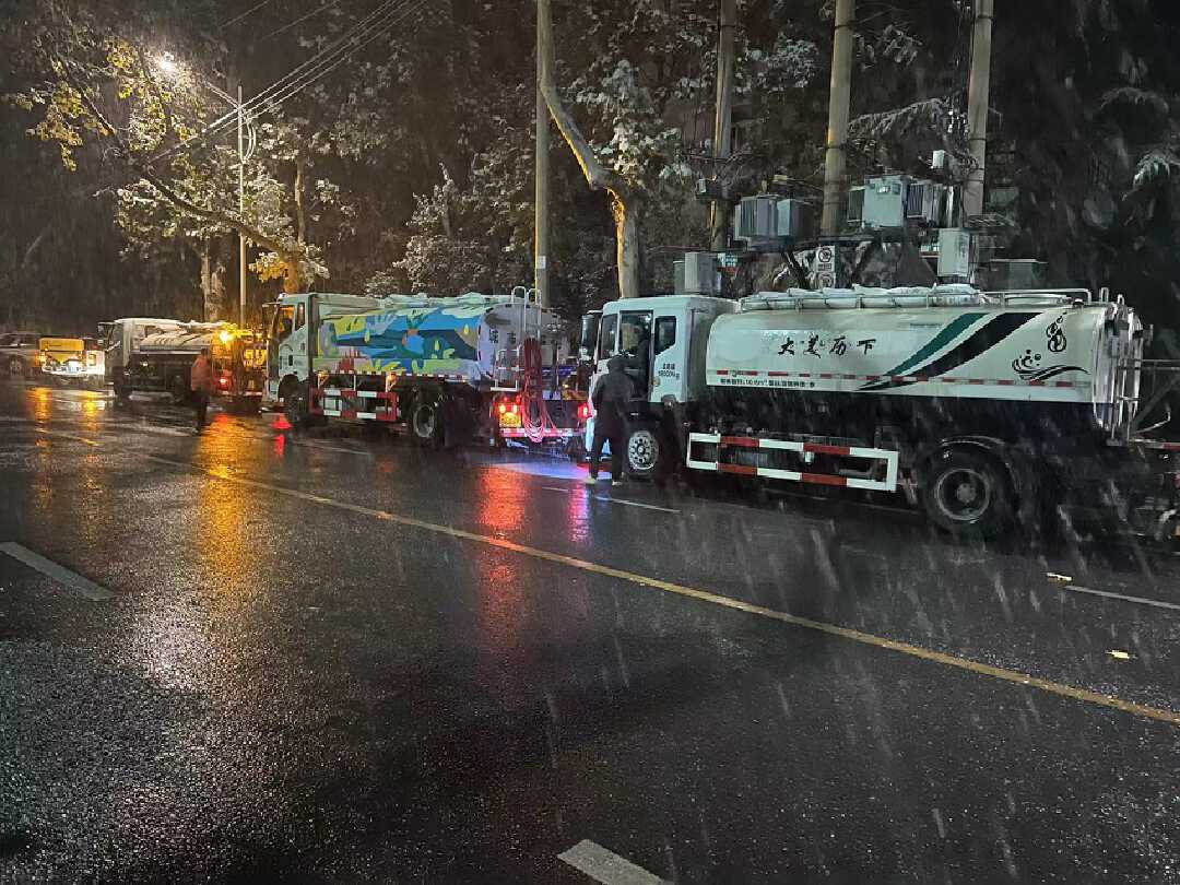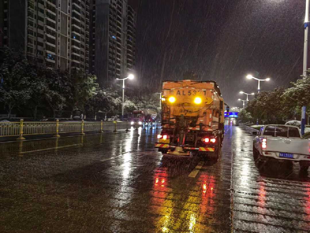 高架、隧道等快速道路是清雪重点,市机扫大队提前启动清雪预案、安放便携式融雪剂,整晚共出动撒布车60余车次,雪滚车20余车次,撒布融雪剂130余吨。有针对性的重点部位进行防结冰作业,确保道路通行无阻。