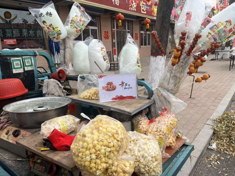 到了吕寨大集的日子,商贩们把进来的货物拉到大集上售卖,附近的村民也将自家的各色产品摆上大集的摊位,村民们则从四面八方赶来采买,暖和的花棉袄、醇香浓郁的石磨香油、酸甜可口的冰糖葫芦、冒热气的老豆腐、不断翻炒的糖炒栗子、刚出锅的热油条、自家养的小鸡蛋、香气扑鼻的老式烤地瓜......熙熙攘攘的人群,叫卖声、讨价还价声此起彼伏。不同于超市的采购模式,大集上还有老百姓手工钉的盖脸、篦子、传盘,自己做的小板凳、小马扎、小虎头鞋......所到之处,充满了温馨与热闹的人间烟火味儿,形成了一道独特的乡村景观。