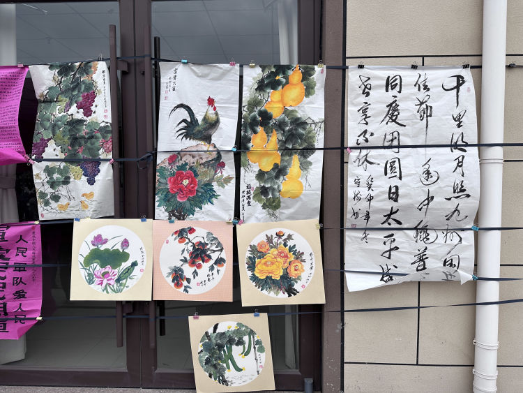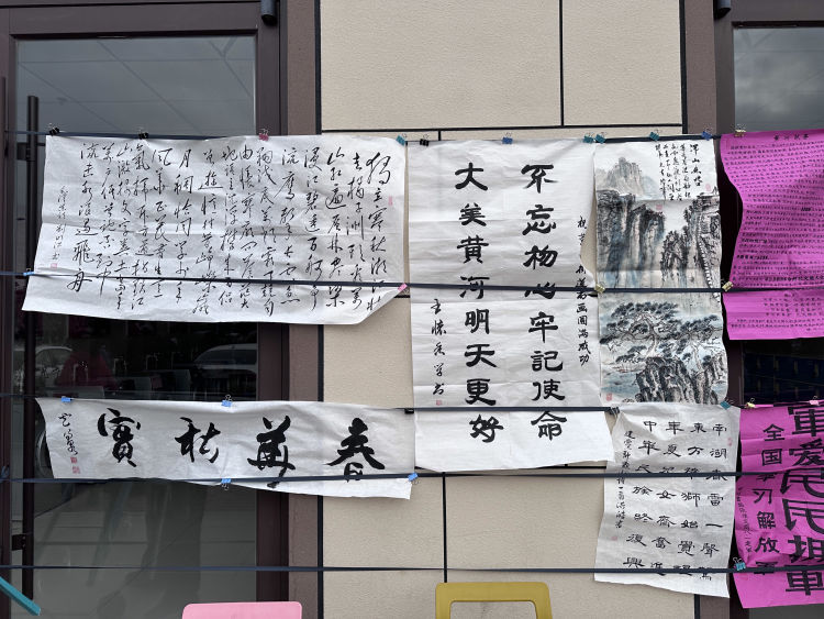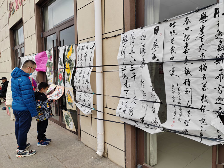 活动现场气氛温馨热烈,飘满笔墨书香。书画家们即兴挥毫、寄情笔端,“不忘初心、牢记使命”“富贵大吉”“花开富贵”一幅幅寓意美好、饱含真诚祝福的书画在妙笔中流出。