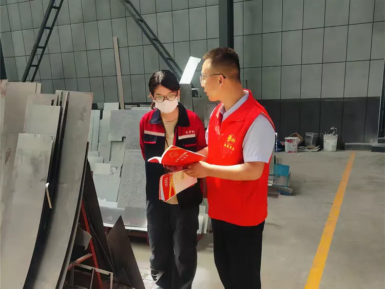 普法交流后,志愿者来到企业车间,向企业员工发放民法典、优化营商环境、反有组织犯罪法、诚信等宣传材料,用通俗易懂的语言向企业员工宣传《中华人民共和国民法典》《优化营商环境条例》《中华人民共和国反有组织犯罪法》等相关法律知识,引导他们进一步了解法律的重要性和作用。