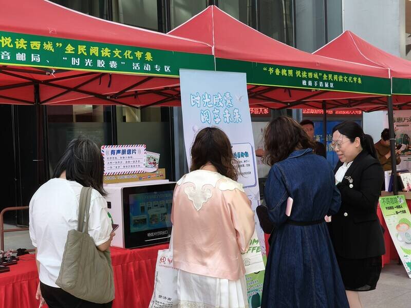 此外,2025年度“书香槐荫 悦读西城”全民阅读活动还创新打造了“全民阅读文化市集”,设立“向前看齐,致敬先进人物”赠书、“我为校园阅读环境做贡献”打卡、“图书漂流”、“时光胶囊”等一系列特色打卡体验活动。活动现场不仅有琳琅满目的图书,还有槐荫特色文创产品展示及特色文化互动体验活动,为读者朋友们带来丰富的体验。