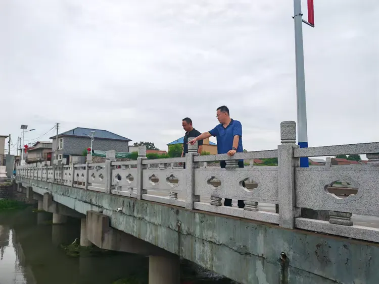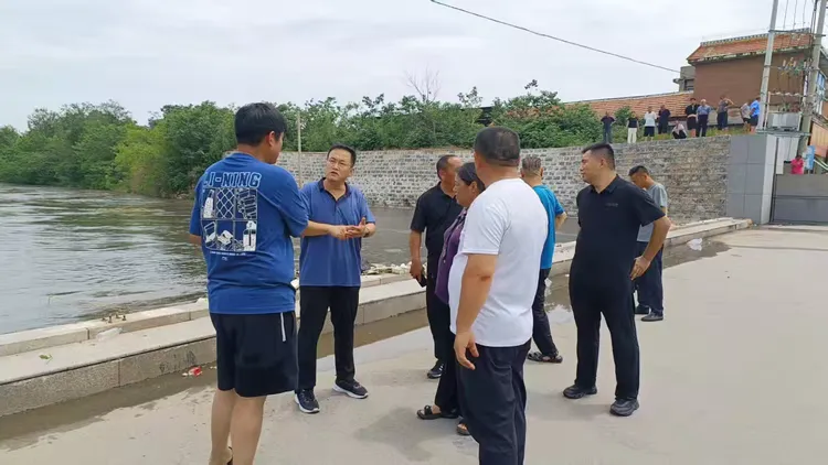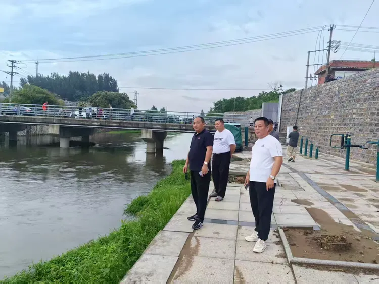 周密部署,织密预警防范网络。 汛情来临前,街道党工委召开会议,全面部署防汛任务。及时转发上级防汛信息,编写街道安全指南,通过各村村民群迅速传达至户到人;各党建工作区及部门严格执行24小时值班值守与夜间巡查制度;水位信息动态实时播报,确保预警信息传递无死角。街道领导带队到防汛一线,对金盘村两河汇流处、回村大桥、大沟崖桥、茂李桥、石家堰桥等关键点位及村内外排水沟渠进行全面巡查,排查整治风险隐患。各村网格员同步行动,重点关注独居老人、困难群众等群体的住房安全和生活需求,及时走访帮扶,多种渠道提醒群众注意汛期农业生产防护及家庭用电安全。