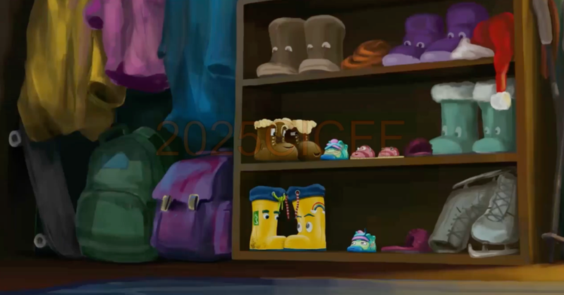 一天早上,旧冬靴亚塔和小运动鞋韦茨被擦得锃亮,带着神秘的神情摆在鞋架前。其他鞋子都十分好奇这双风格迥异的鞋子为什么一整晚都不见踪影。